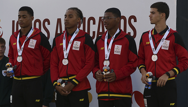 A estafeta composta pelos nadadores Santiago Guimarães, Carlos Fernandes, Mário Baptista e Oleksander Zhukov, travou uma batalha de titãs com as selecções da Argélia, África do Sul, Senegal e Zimbabwe, na disputa por um lugar no pódio na última prova do dia.